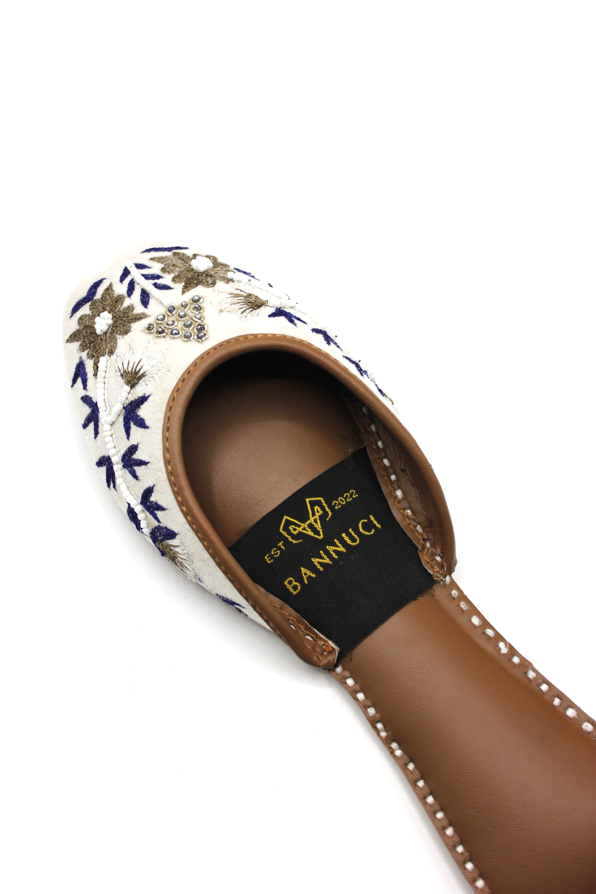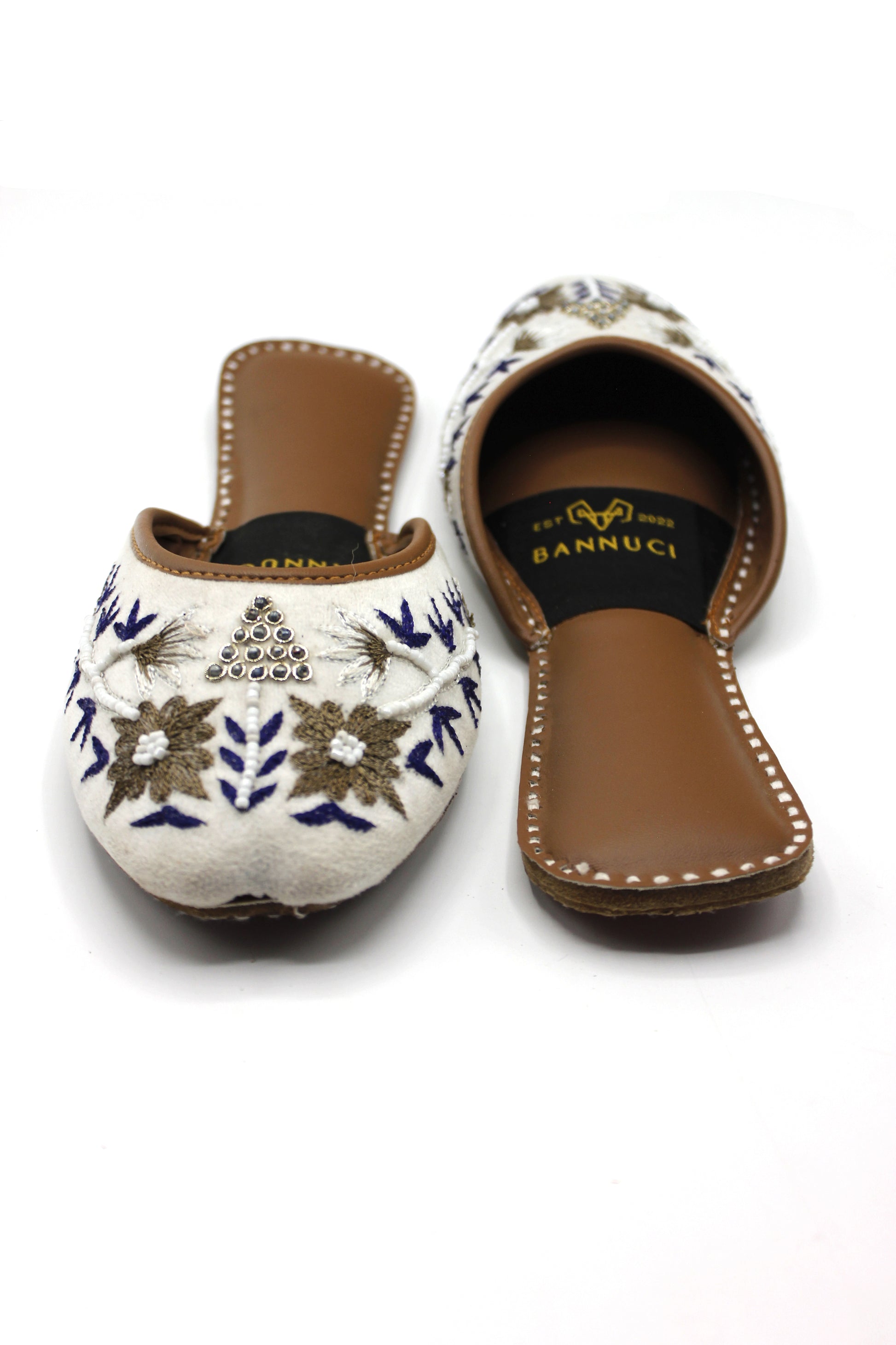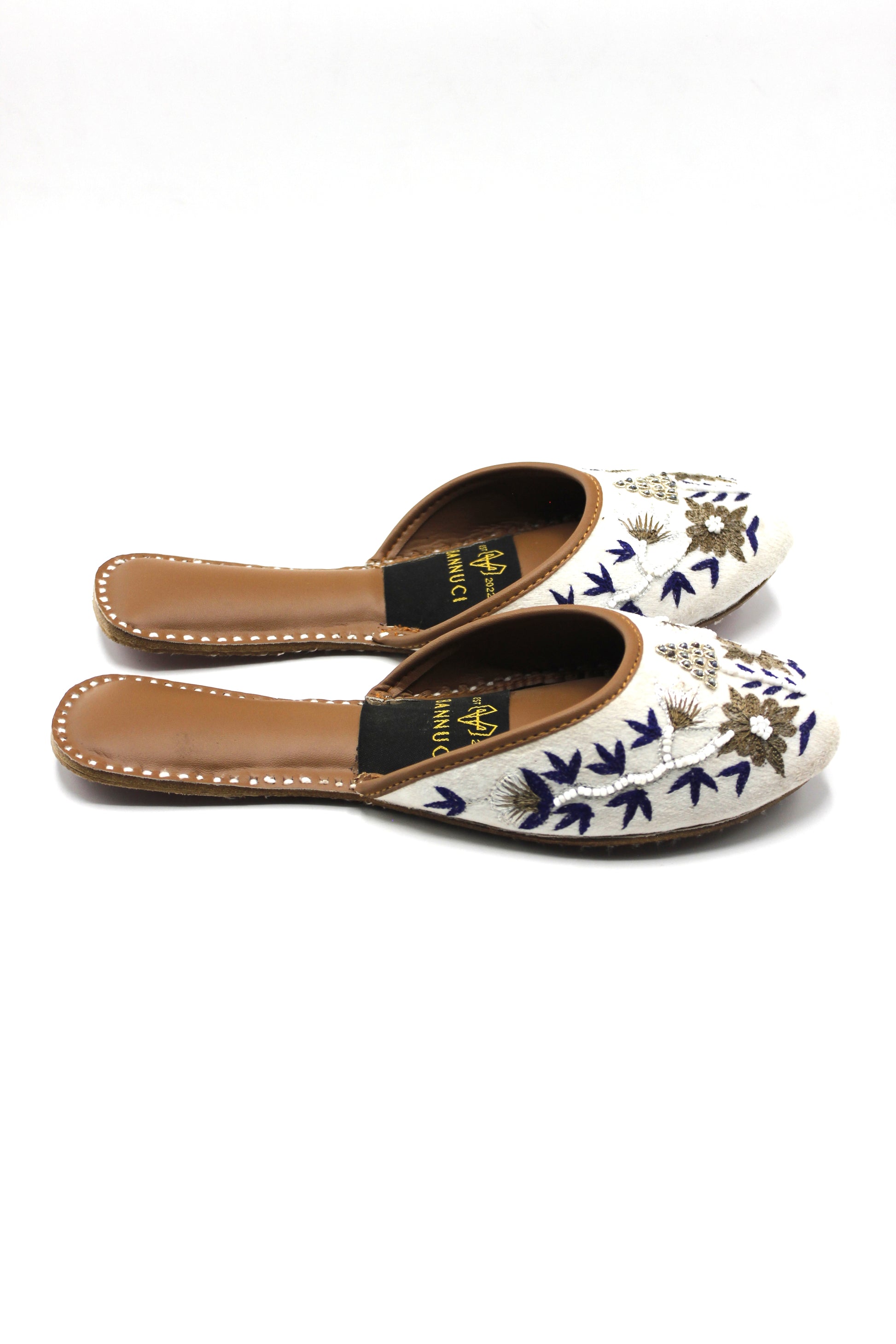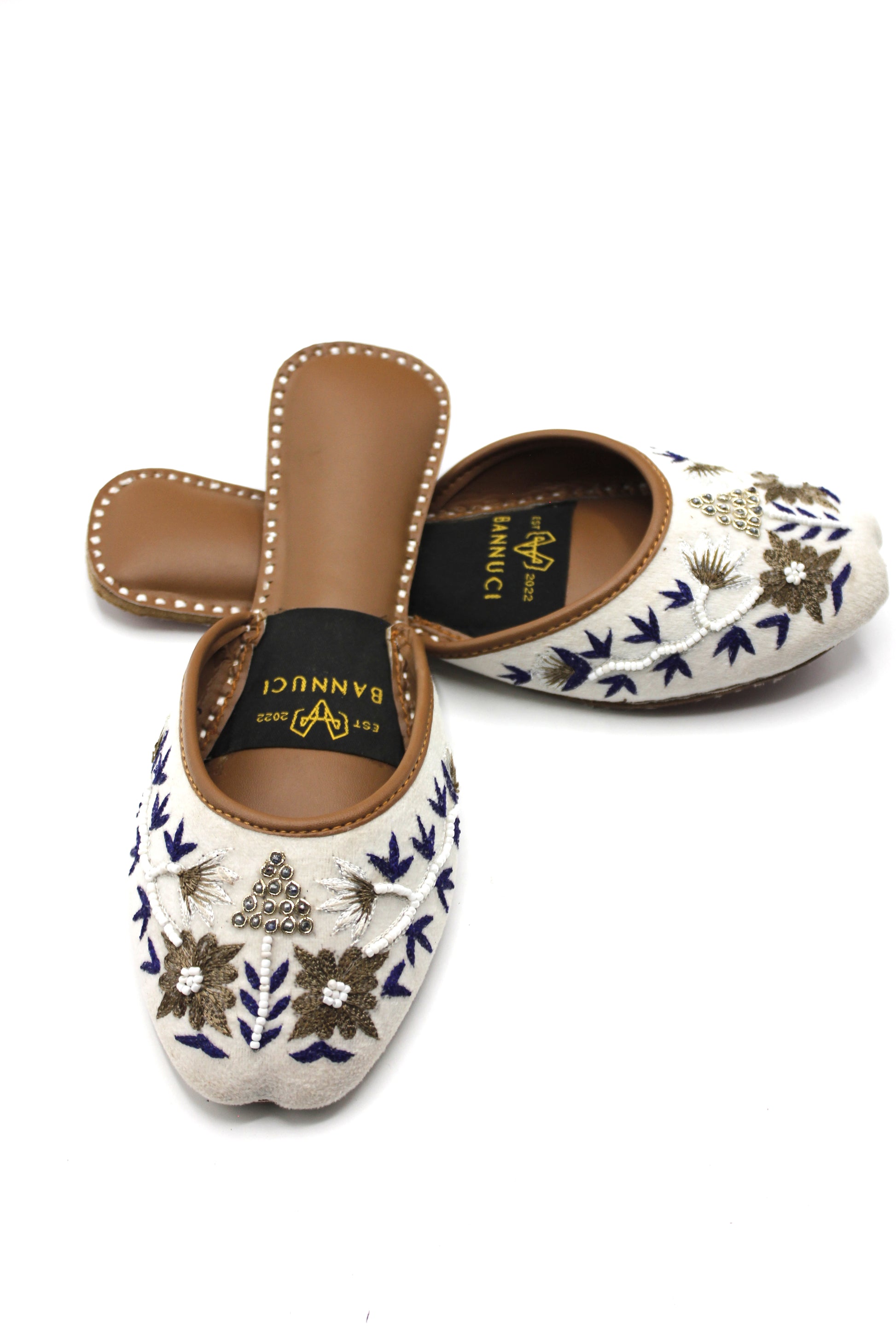 Premium Quality Back less White Multi Color Pearl Embroidered Khussas