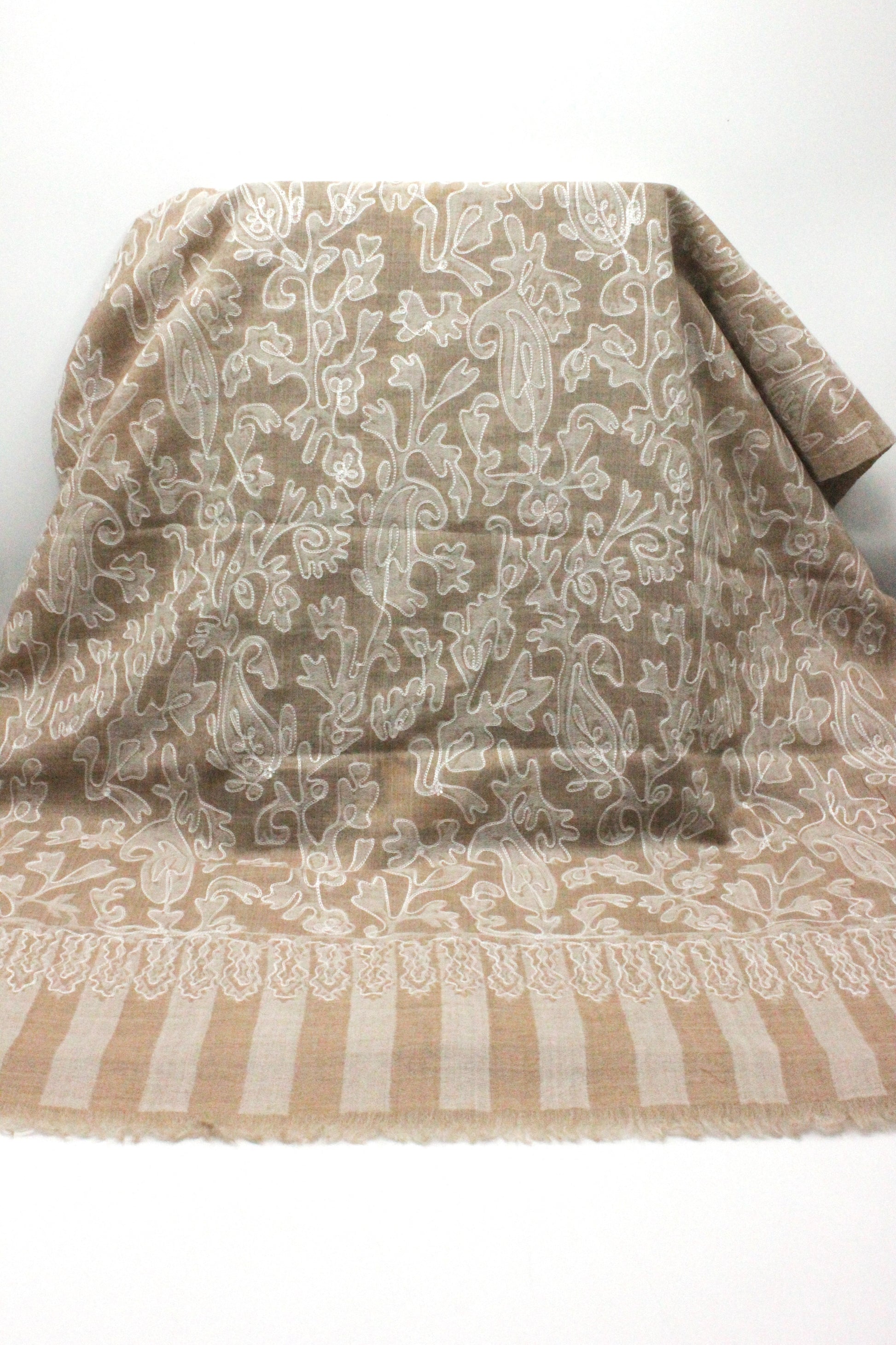PREMIUM QUALITY BEIGE WITH OFF WHITE EMBROIDERED PASHMINA CASHMERE SHAWL