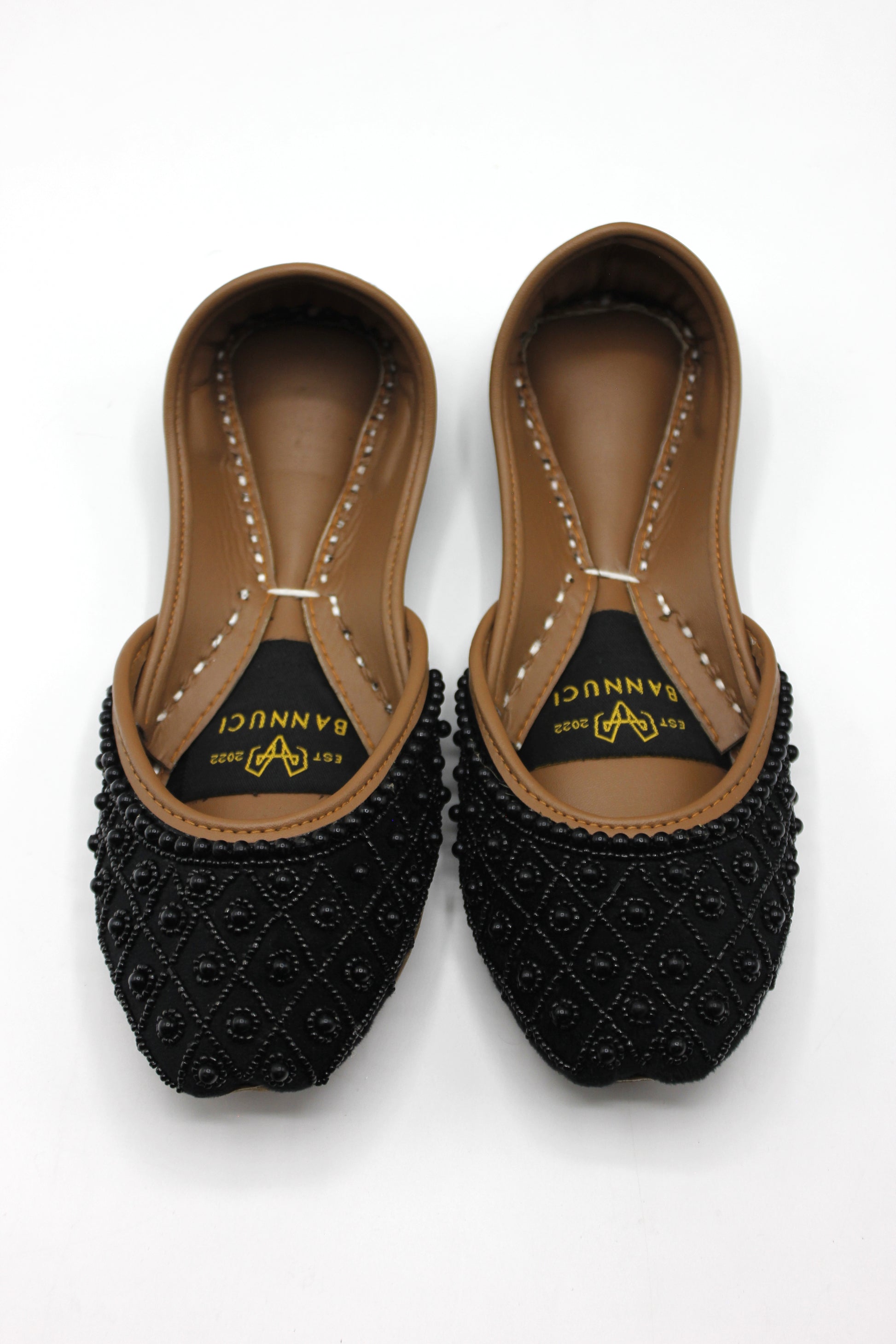 - For a Gentlelady and sophisticated look, try our Pearl Embellished Leather Khussas. This Embroidered Khussas online is made from soft leather and Leather sole, with a simple and elegant design. This Embroidered Khussas footwear is ideal for formal events, weddings, and celebrations