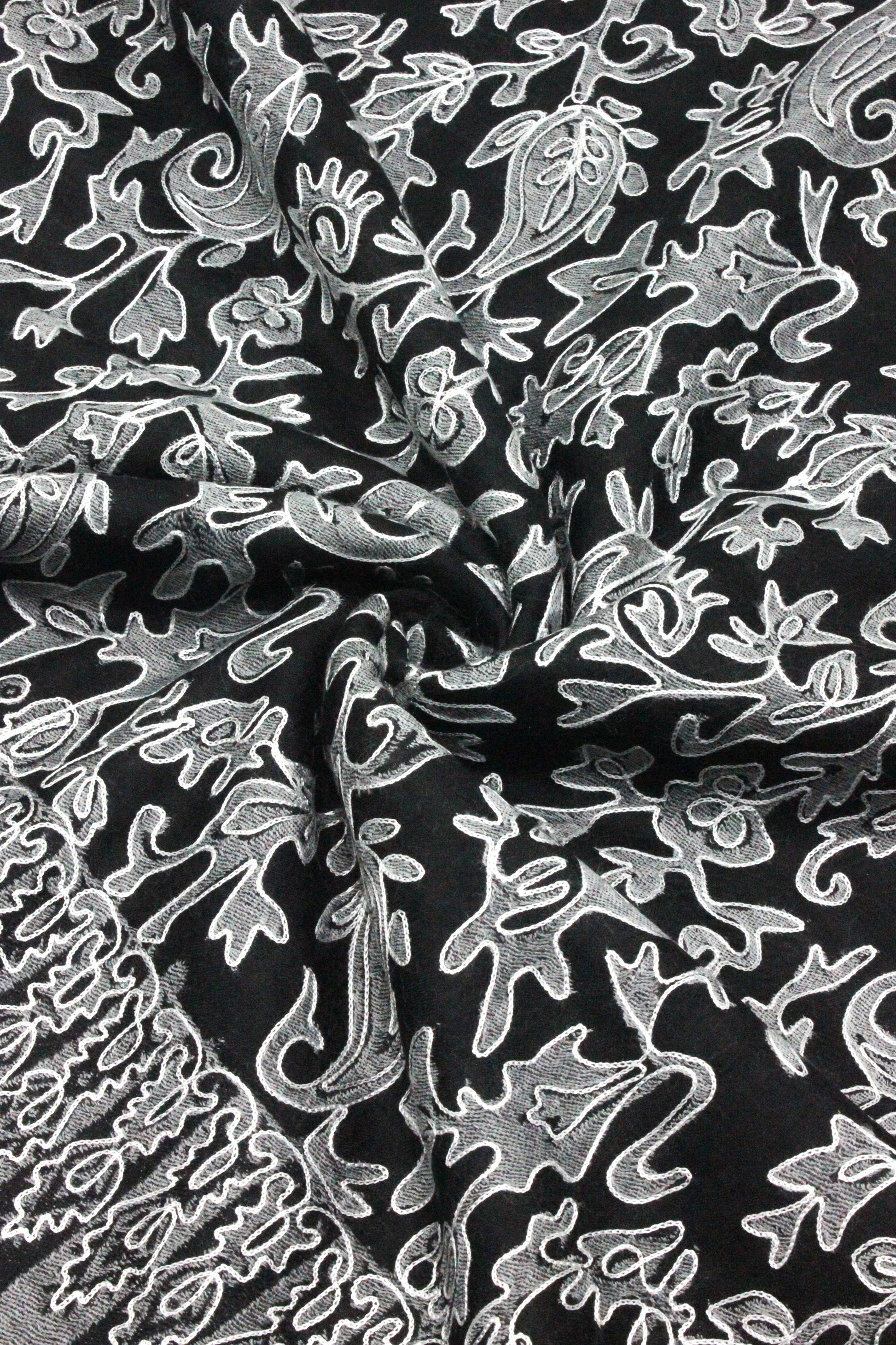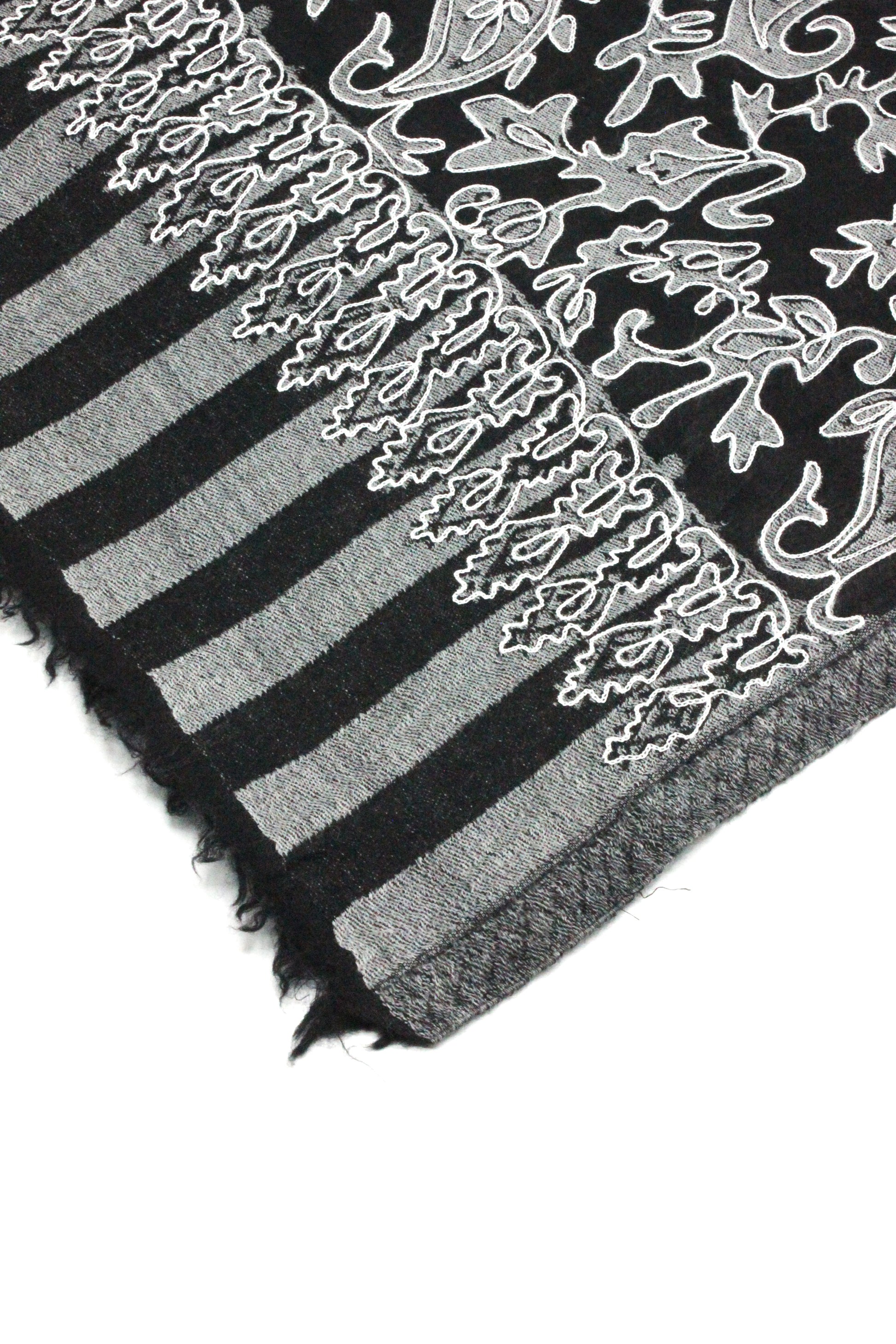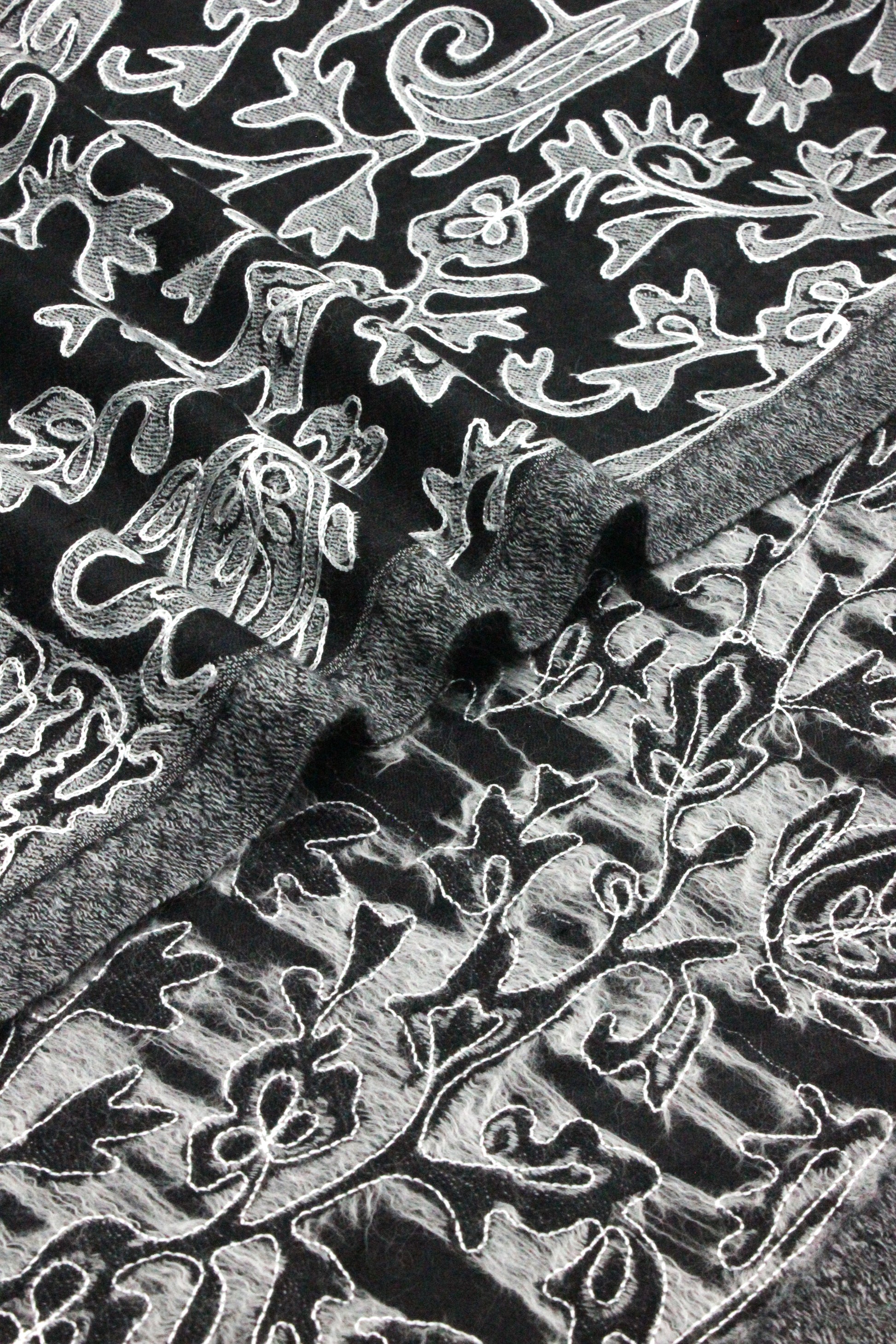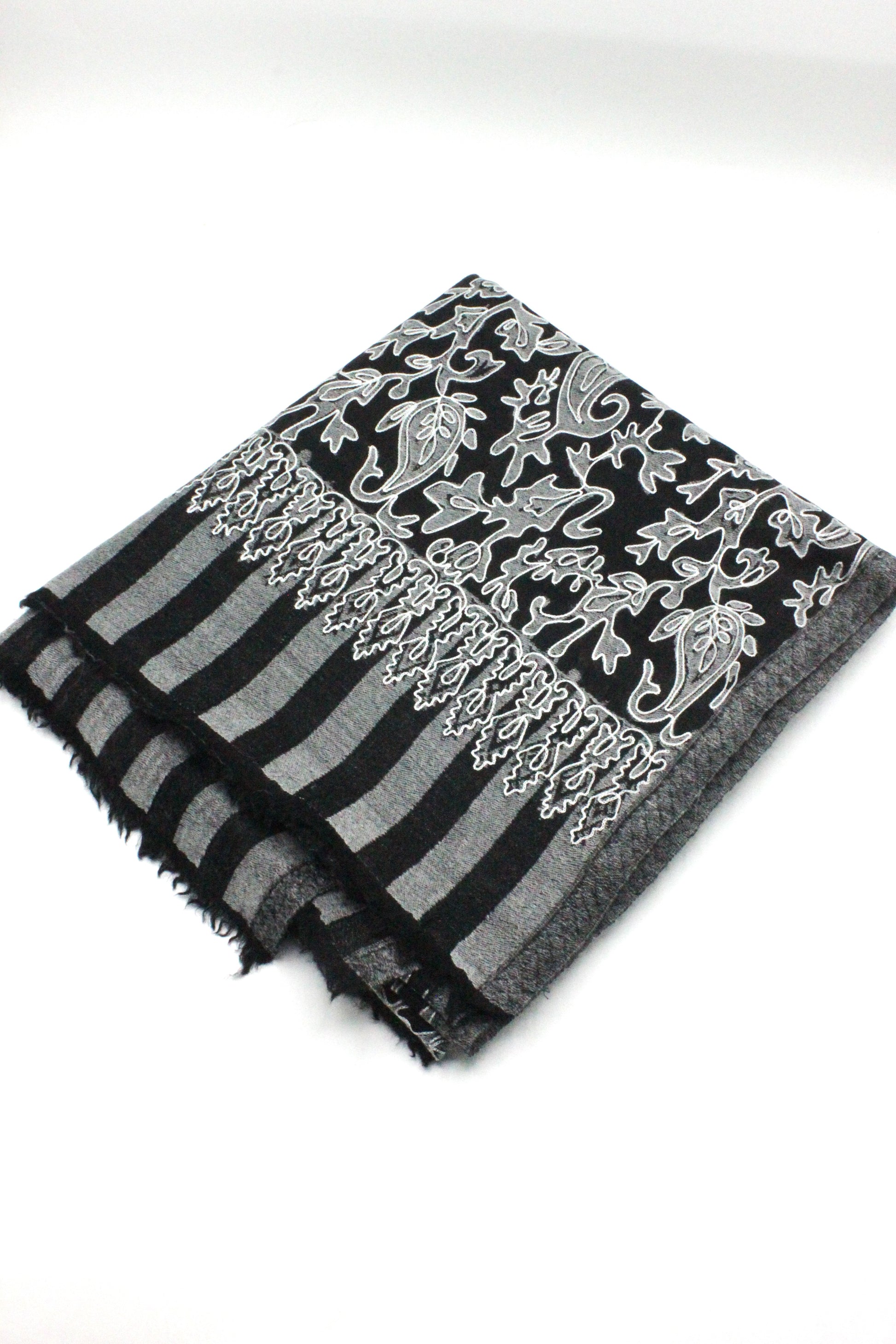 PREMIUM QUALITY BLACK WITH OFF WHITE EMBROIDERED PASHMINA CASHMERE SHAWL