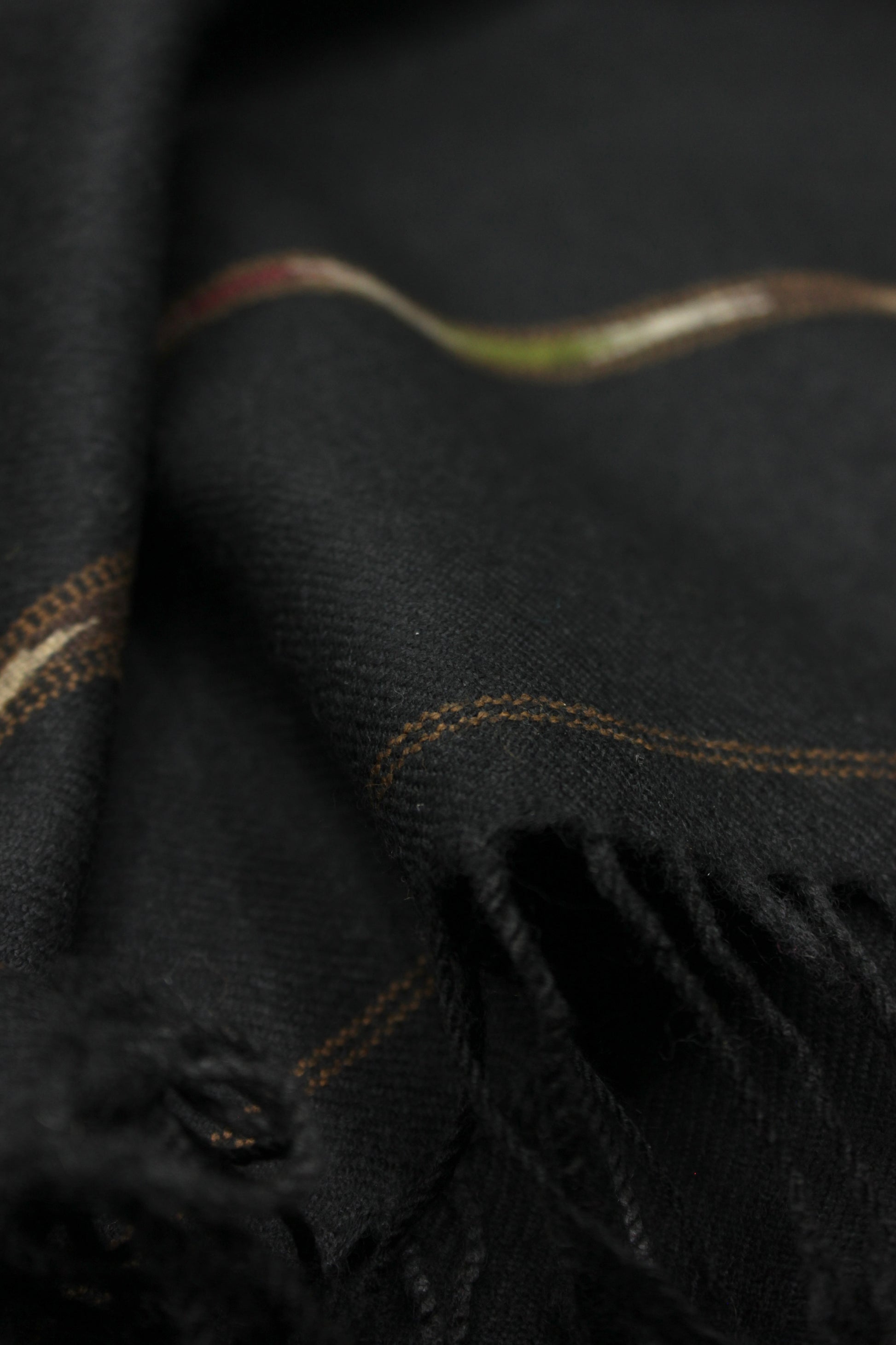 Premium Quality Double Fiber Black striped Pure Woolen Shawl