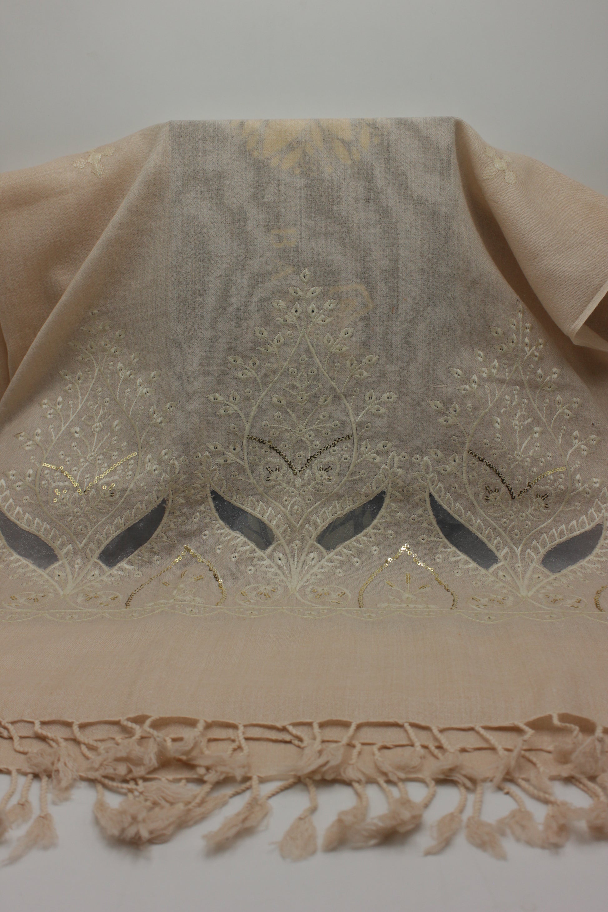 PREMIUM QUALITY LIGHT PINK EMBROIDERED WOOLEN SHAWL FOR WOMEN
