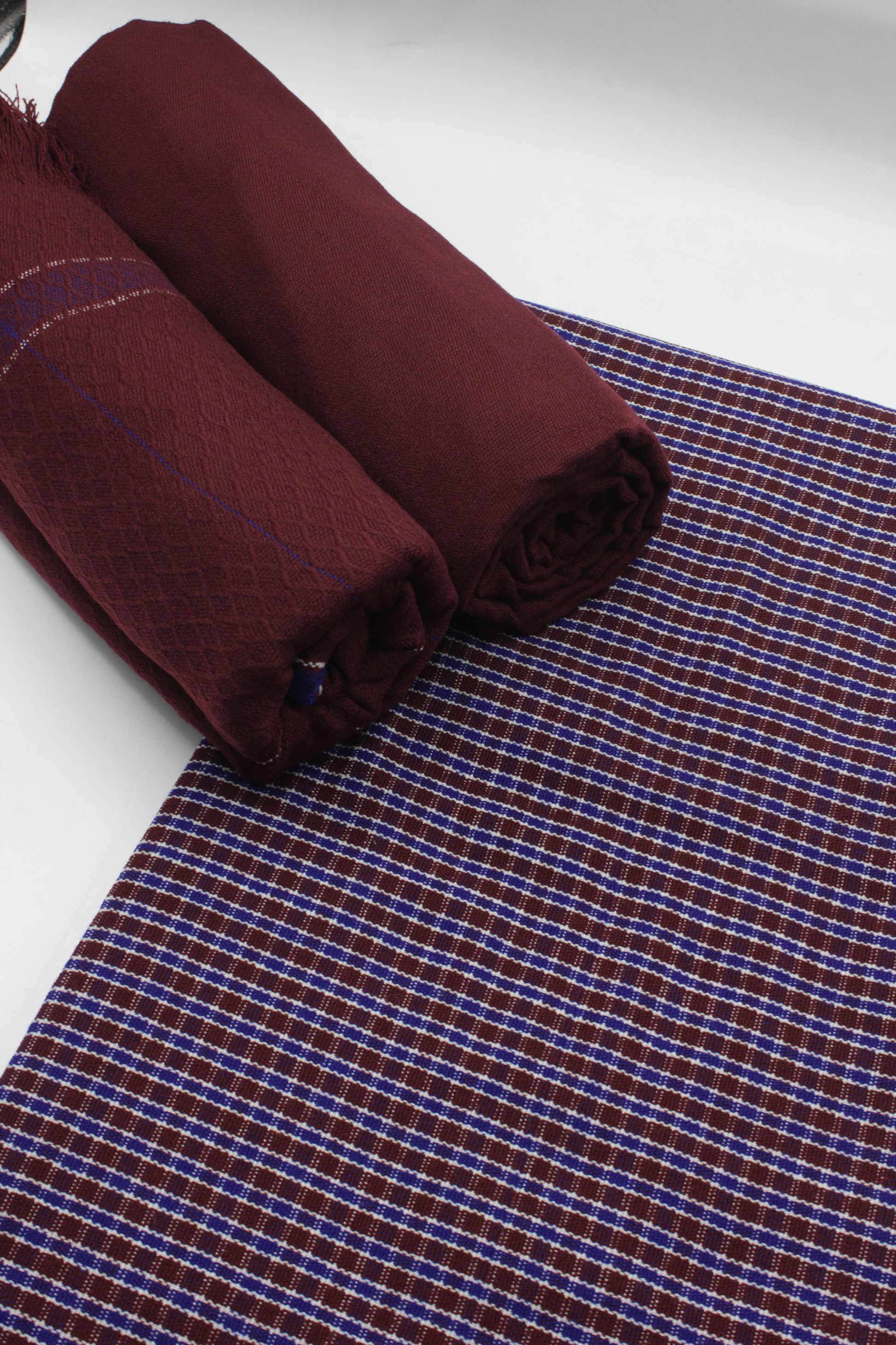PREMIUM QUALITY MEROON WITH NAVY BORDER PURE WOOLEN SUIT FOR WOMEN