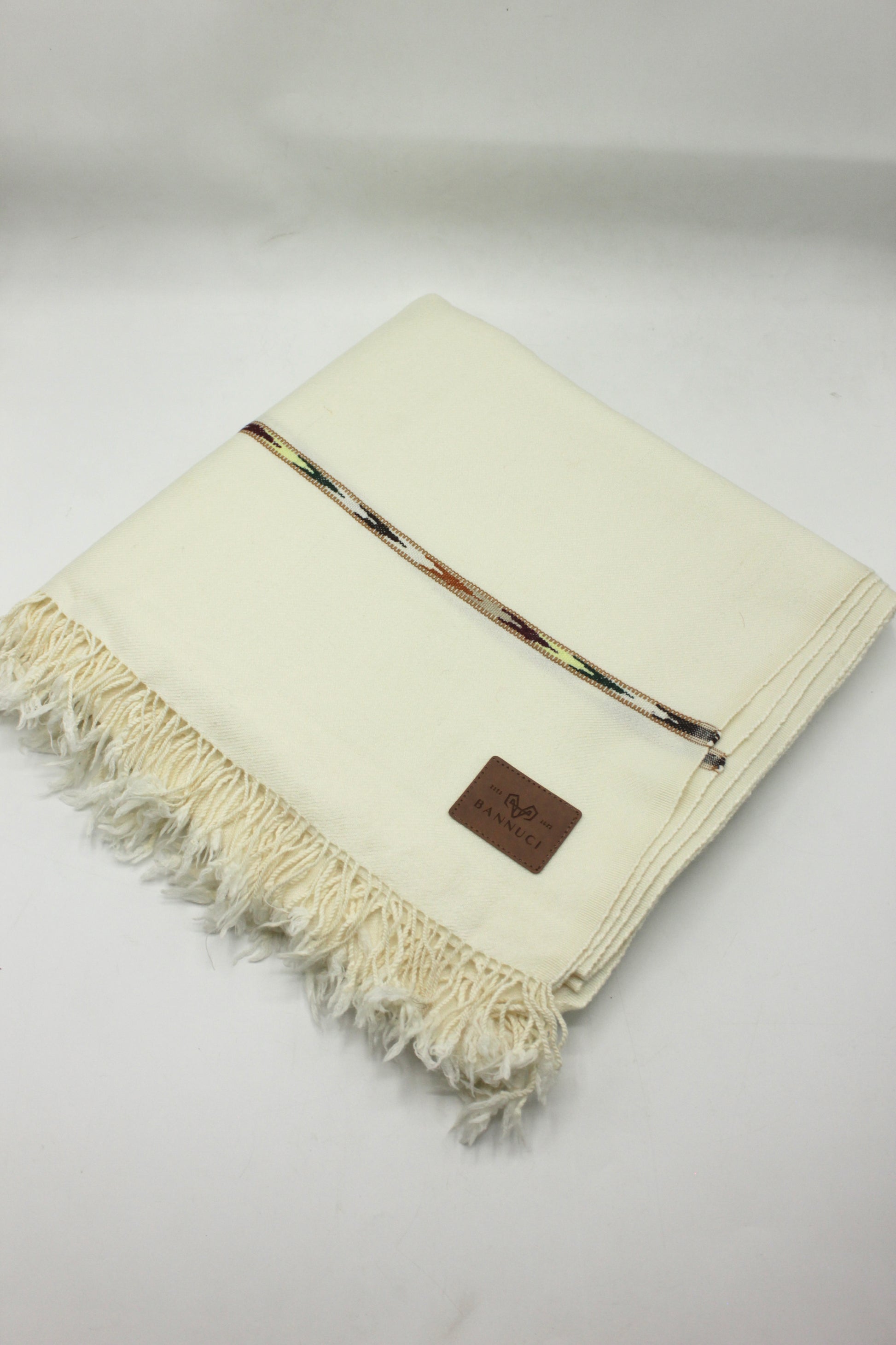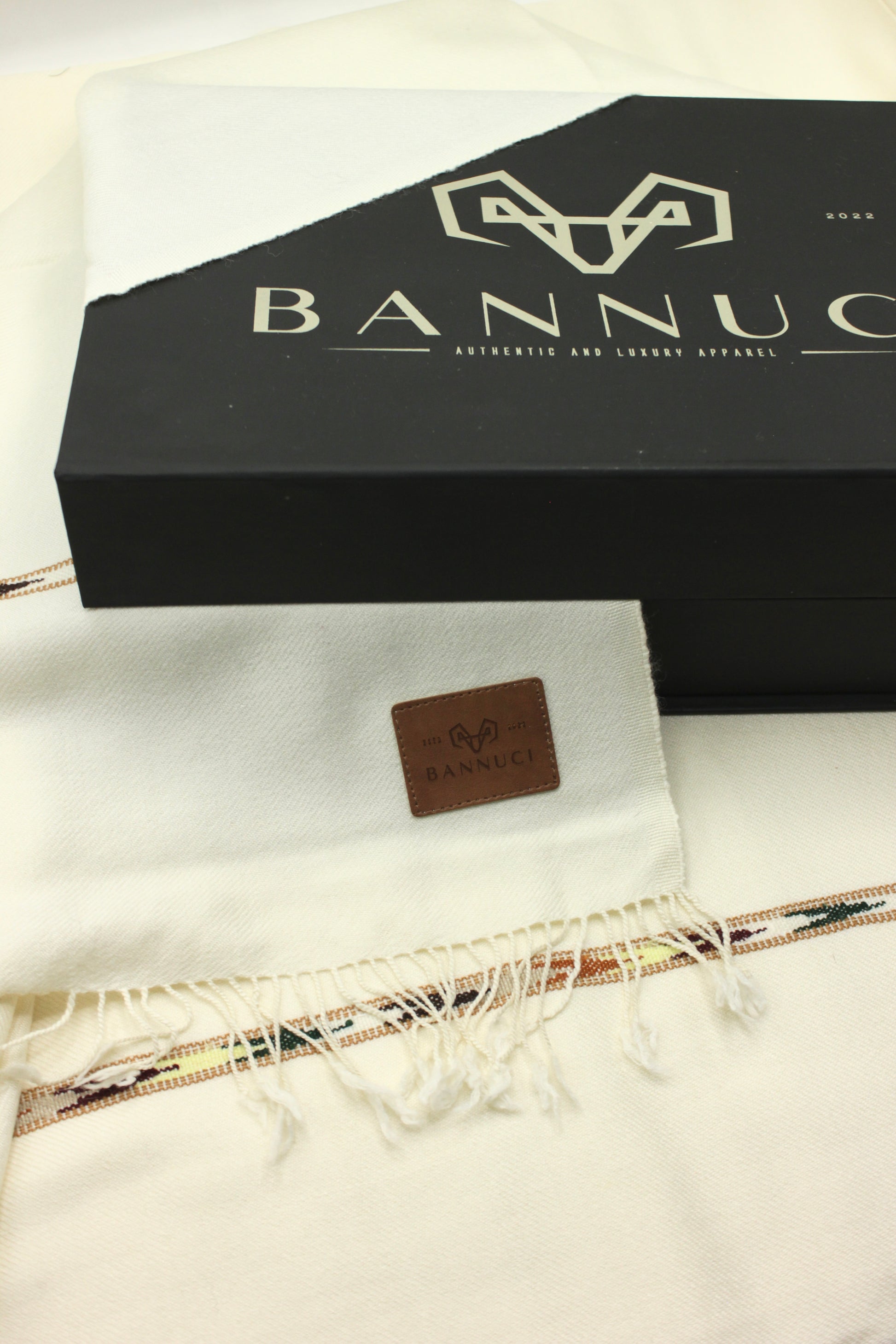 Premium Quality Off White Black Border Pure Woolen Shawl By Bannuci
