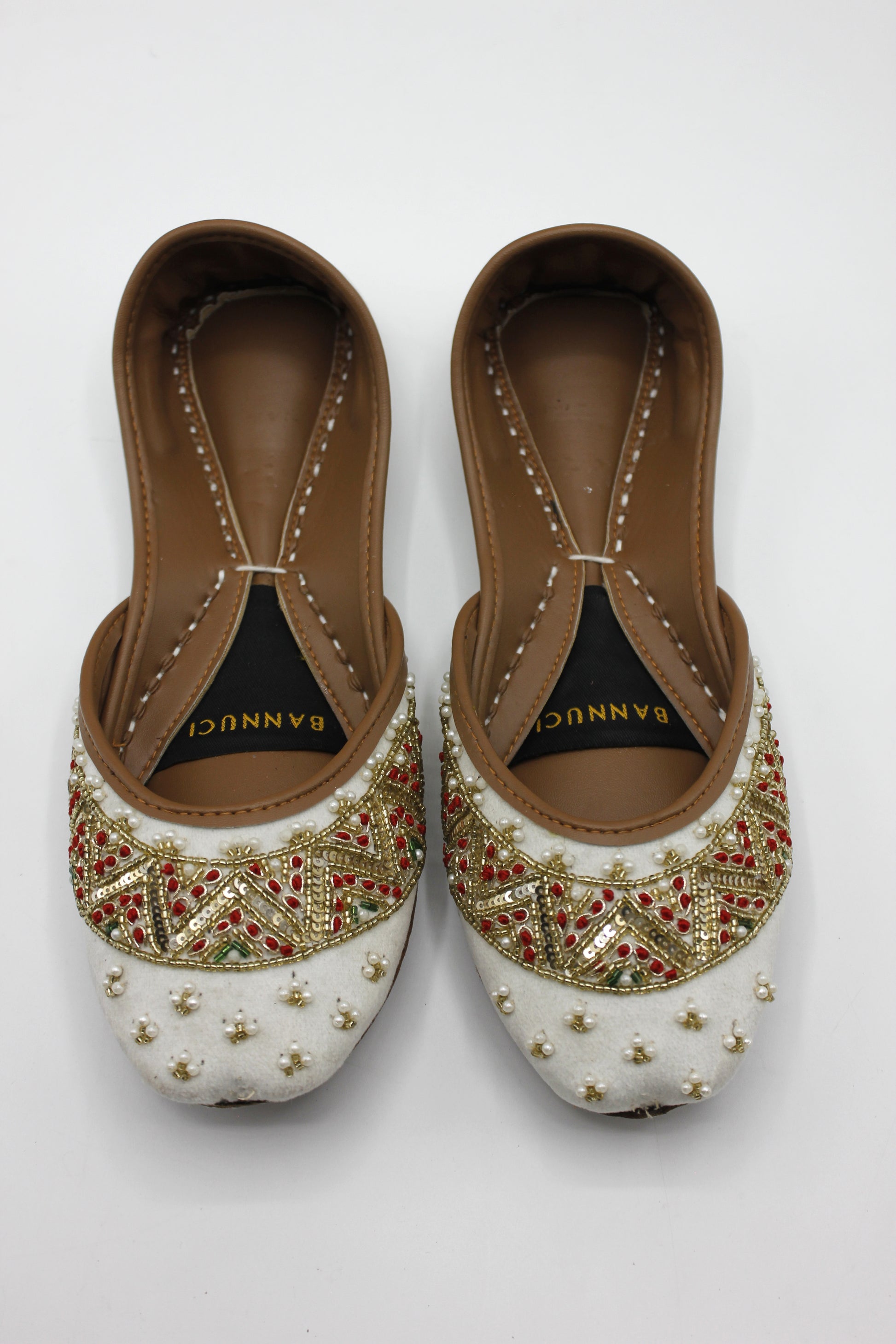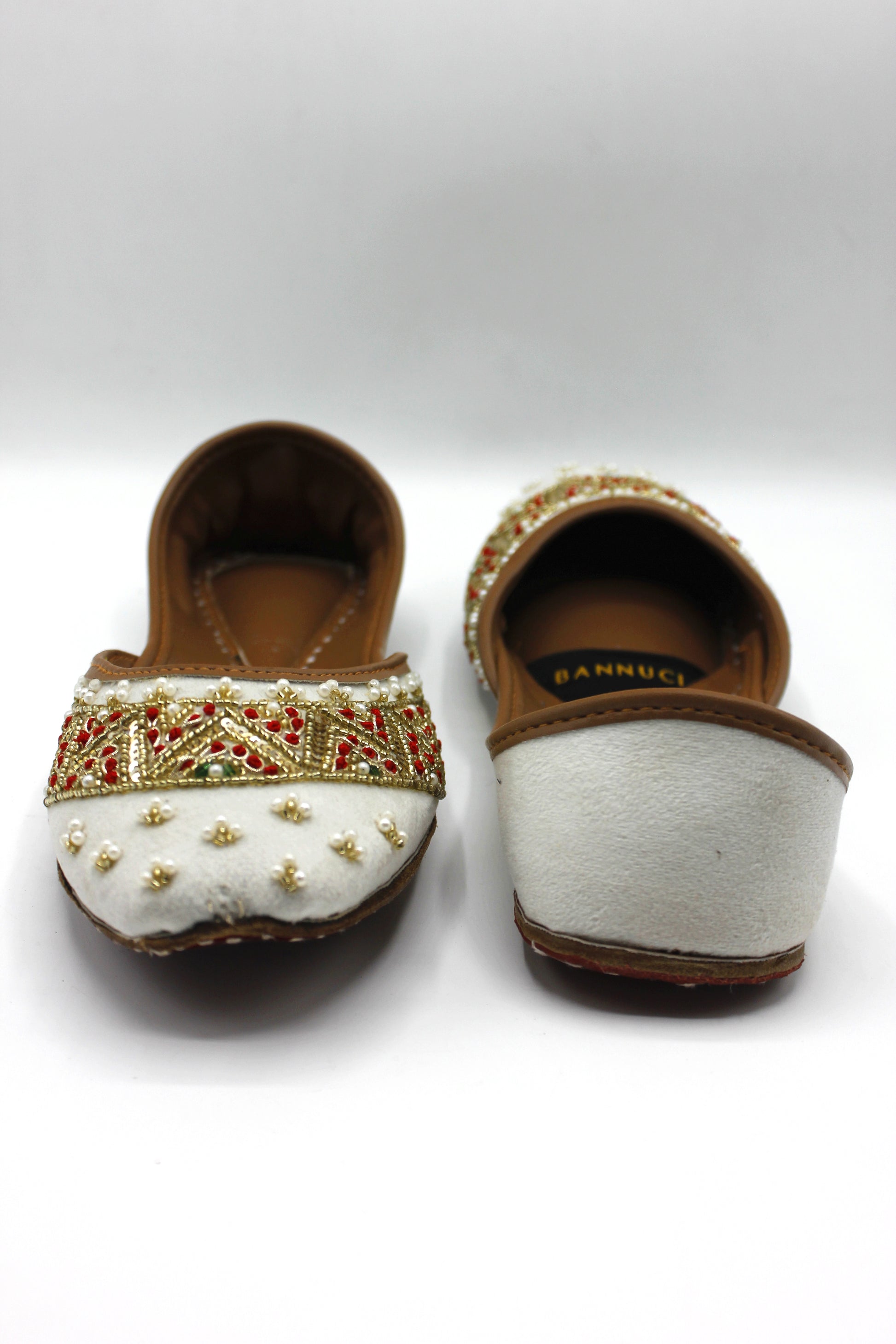 Premium Quality Off White Multi Color Pearl Embellished Khussas