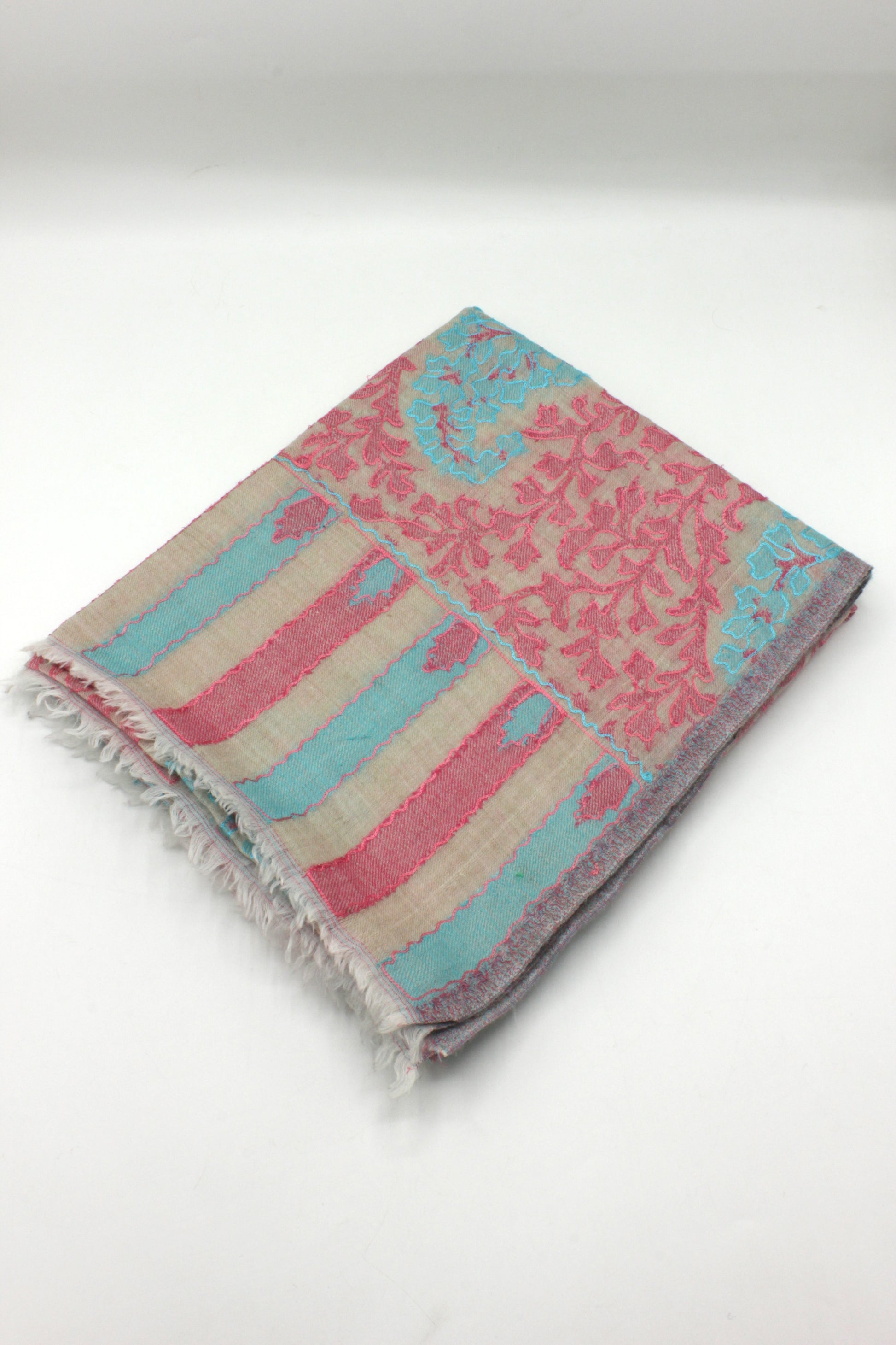 PREMIUM QUALITY OFF WHITE WITH PINK EMBROIDERED PASHMINA CASHMERE SHAWL