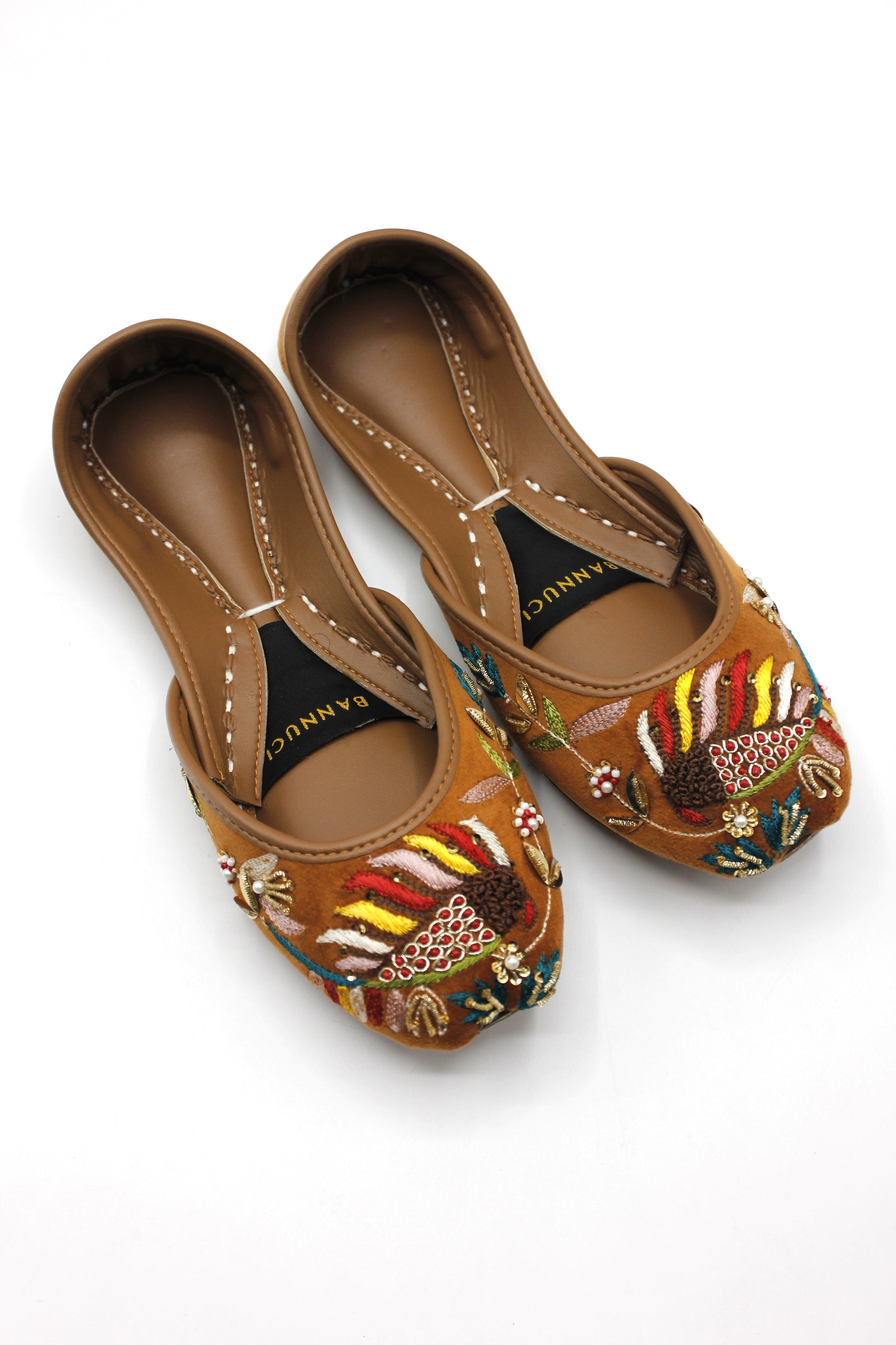 - Add some color and flair to your wardrobe with our Handmade Embroidered Khussas, Plain Khussas, Printed Khussas, Kola Puri Khussas and Peep toes Khussas, with a variety of patterns and colors to choose from. You can pair this Embroidered Khussas online with formal western dress, choose solid neutral hues like black, grey, or beige, Such colors will go well with formal attire. Tassel, velvet, or embroidered Khussas can be worn with informal and casual Western attire or anything you like.
