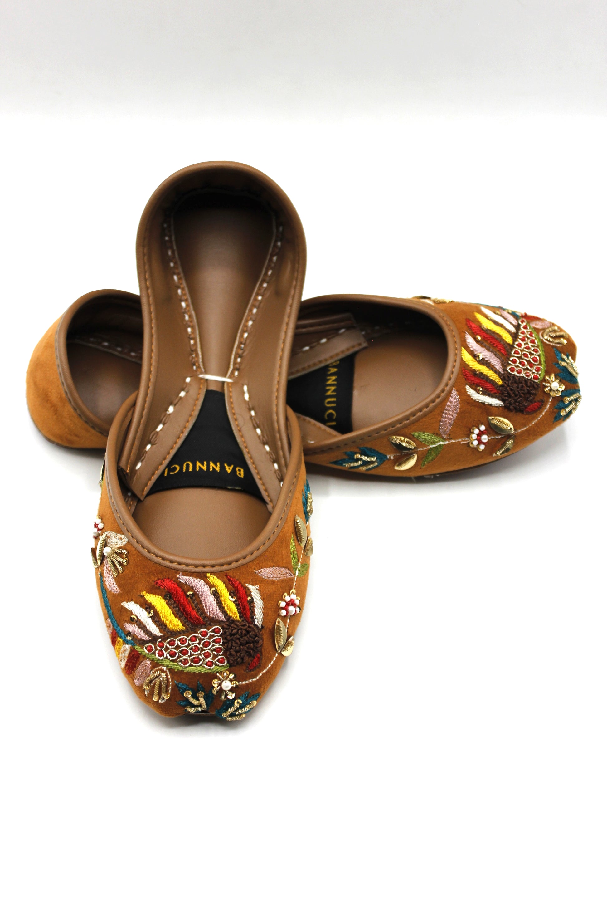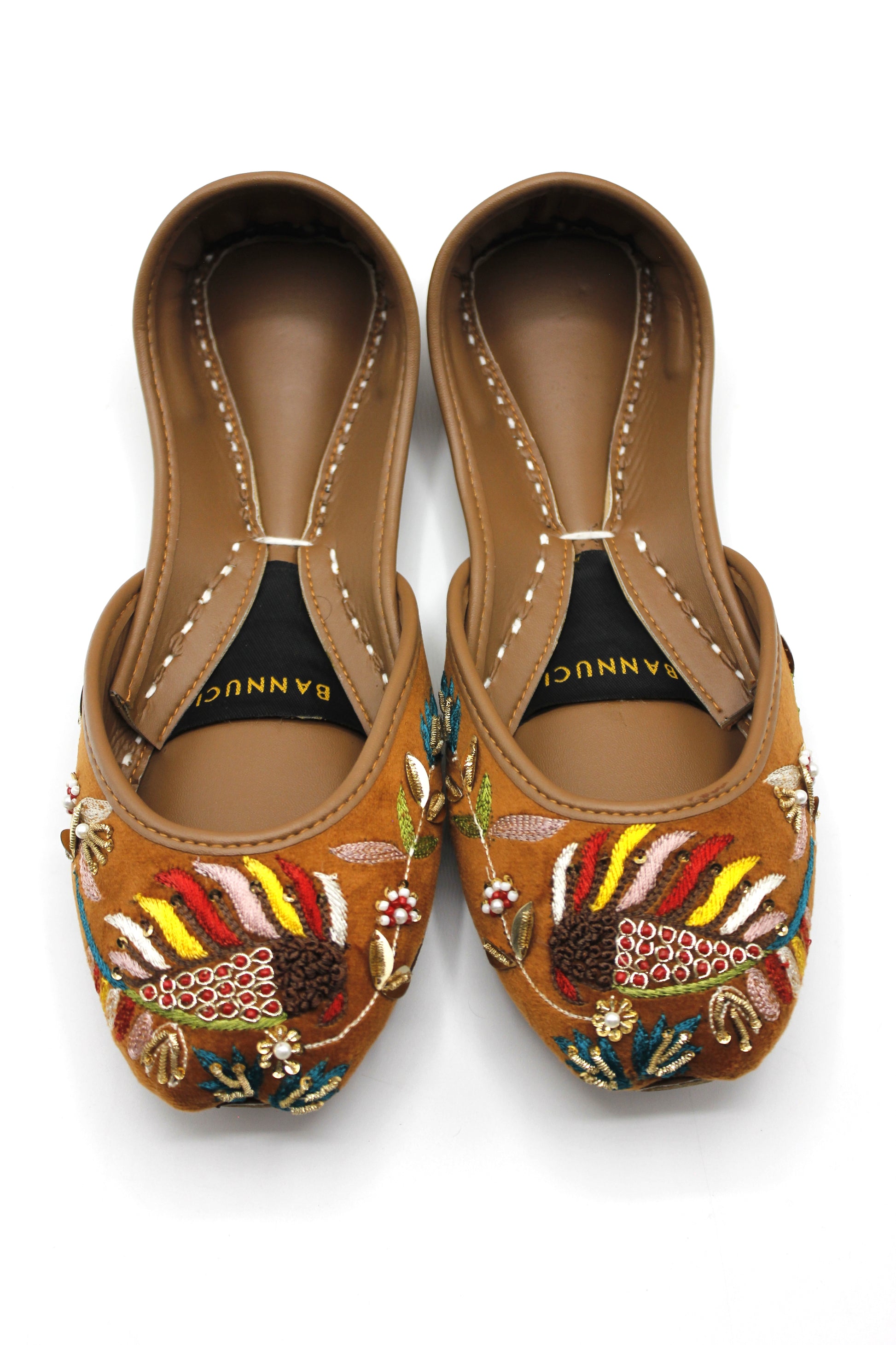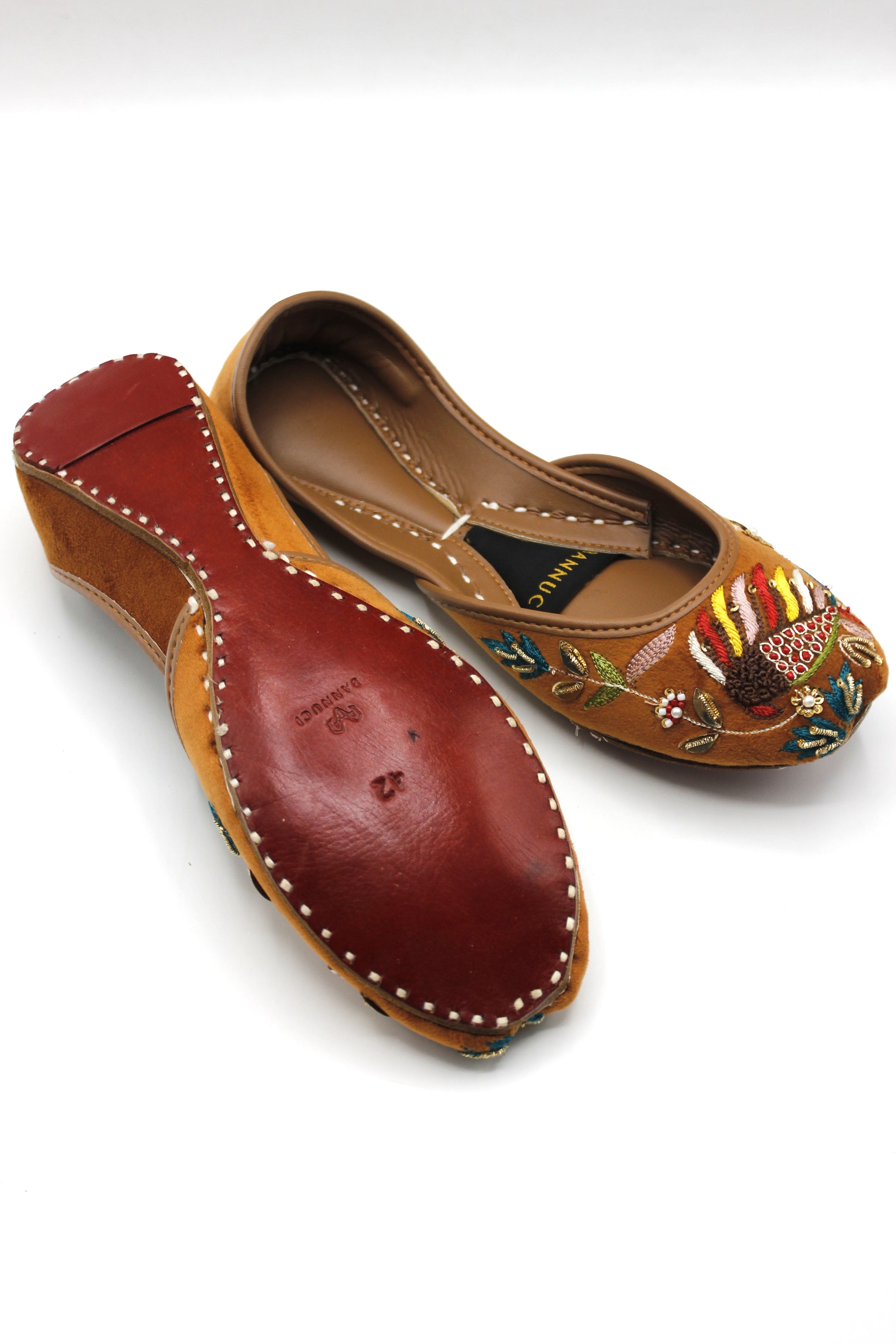 - Our Embroidered Khussas features a padded insole, easy to wear, and a Leather sole. You can wear this Embroidered Khussas with any outfit and impress everyone with your fashion sense.